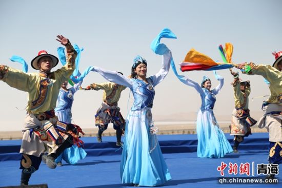 随着响亮而雄壮的螺号声响起,此次活动文艺演出也拉开帷幕。在旋律悠扬的歌曲《青海湖》及舞蹈《花开盛世》的精彩演出中,演出现场的气氛达到了高潮,现场掌声、喝彩声连绵不断,精彩纷呈的文艺演出、原汁原味的民俗表演,都展现了一幅幅“国泰民安、人海和谐”的生动画面。
