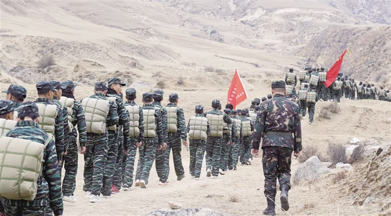 集体野外徒步拉练。图由共青团西藏自治区委员会提供