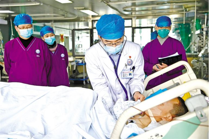 འདི་ནི་རང་སྐྱོང་ལྗོངས་མི་དམངས་སྨན་ཁང་ལ་རོགས་སྐྱོར་བྱེད་མཁན་པེ་ཅིང་སློབ་ཆེན་མི་དམངས་སྨན་ཁང་གི་ནད་ལྕིའི་གསོ་རིག་ཚན་ཁག་གི་སྨན་པ་དཀའ་བཅུ་པ་གཞོན་པ་ཝང་པིན(དཀྱིལ)གྱིས་རང་སྐྱོང་ལྗོངས་མི་དམངས་སྨན་ཁང་གི་སྨན་པ་དང་མཉམ་དུ་ནད་པར་ལྟ་བཞིན་པ།