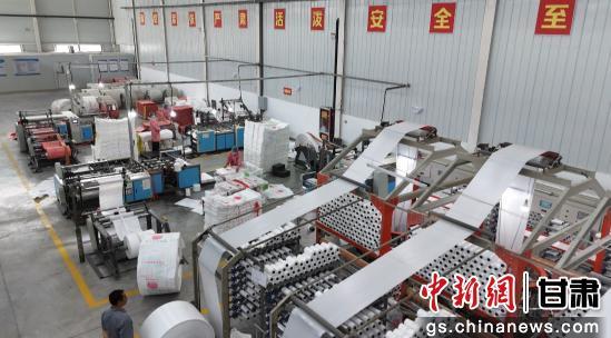 图为灵台县现代包装科技产业园三力明塑业有限公司忙碌的生产车间。