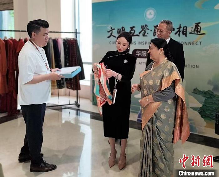 展区特设“文明互鉴拍照墙、中华传统体育文化体验区”,吸引大量外国嘉宾代表现场试穿华服、体验唐宋不同风格妆造、佩戴非遗云肩合影,体验中华传统体育文化项目锤丸、投壶,加拿大汉学家孟娜赞叹:“一针一线皆是文明密码!”,诠释“各美其美,美美与共”的深刻内涵。