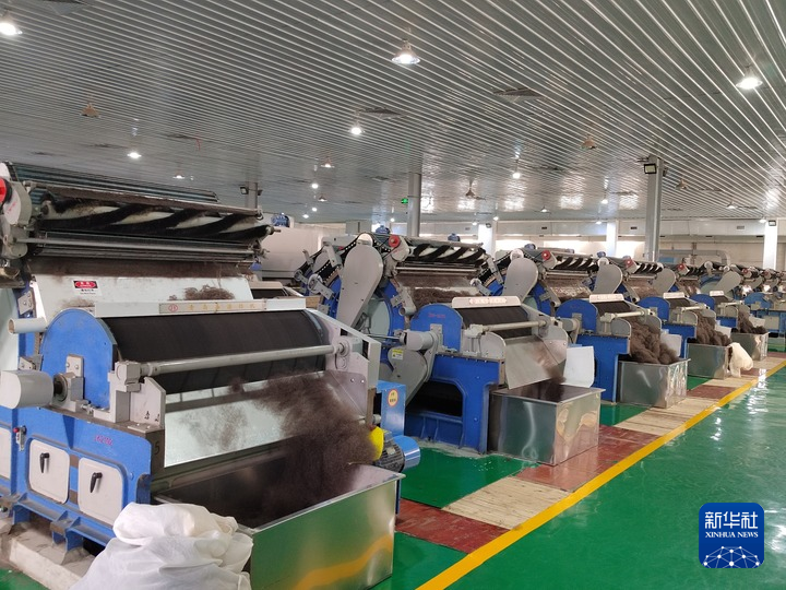 5月30日,西藏圣信工贸有限公司生产车间的自动分梳设备正在运转。(受访者供图)