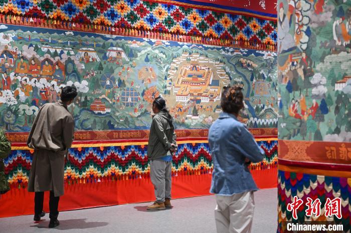 图为民众参观唐卡《吐蕃赞普世系大唐卡金子明镜》。贡嘎来松 摄
