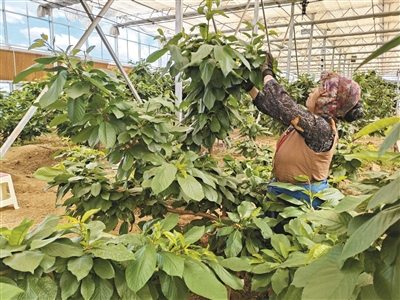 图为群众在吞弥现代农业产业园大棚内查看樱桃、草莓生长情况。李从芳 摄