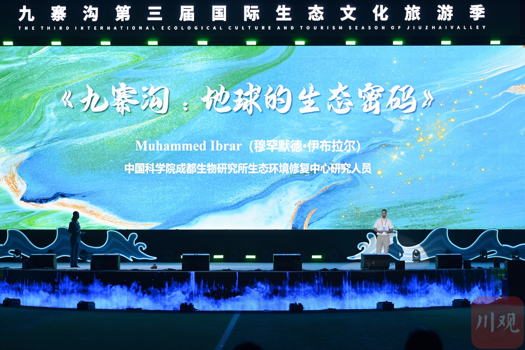 穆罕默德·伊布拉尔以《九寨沟:地球的生态》为题进行分享。九寨沟县委宣传部供图