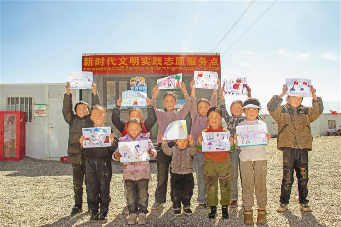 དགའ་ལྡན་གྲོང་ཚོར་འབྱོར་སྐབས། ཀྲུང་གོ་ཚན་རིག་ཁང་སེམས་ཁམས་ཞིབ་འཇུག་སུའོ་ཡི་འཕྲལ་སྡོམ་སེམས་ཁམས་རོགས་སྐྱོབ་རུ་ཁག་དང་ཀྲུང་གོ་སྤྱི་ཚོགས་མཉམ་འབྲེལ་ལྷན་ཚོགས་སྤྱི་ཚོགས་སེམས་ཁམས་ཞབས་ཞུ་ཚོགས་པའི་དང་བླངས་པ་ཚོས“དྲོ་སྐྱིད་ལྡན་པའི་ཁང་ཆུང”ནང་གྲོགས་པོ་ཆུང་ཆུང་ཚོ་ཁྲིད་ནས་རི་མོ་འབྲི་བཞིན་འདུག ཀྲུང་དབྱང་རླུང་འཕྲིན་བརྙན་འཕྲིན་སྤྱི་ཁྱབ་ལས་ཁུངས་ཀྱི་དང་པོའི་བཅོ་ལྔའི་དུས་ཆེན་མཚན་ཚོགས་ཀྱི་ལྷ་ས་ཡན་ལག་ཚོགས་རར་གྲོགས་པོ་ཆུང་ཆུང་པ་སངས་བུ་ཁྲིད་དང་ཉི་མ་གཉིས་ཀྱི་ལག་བྲིས་རི་མོ་བསྟན་པས་ཚང་མ་ཧ་ཅང་དགའ་པོ་བྱུང་ཡོད།
