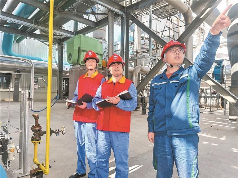 工作人员在中国绿发青海分公司海西州多能互补集成优化国家示范工程内走访电力外送情况。本报记者 张鹏 摄