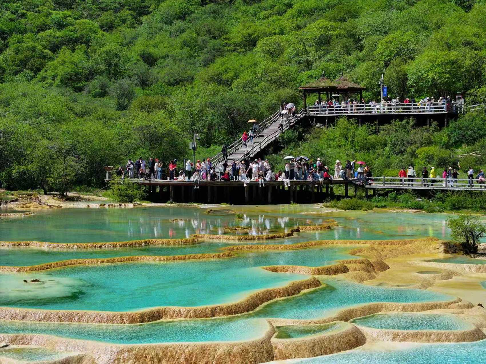 为应对游客高峰,黄龙风景名胜区管理局启动了一级响应。除必要值班人员外,全员下沉一线为游客服务。同时,联合消防、森林警察成立应急小组,重点强化索道、售票点、观景平台等多个关键节点的秩序维护。