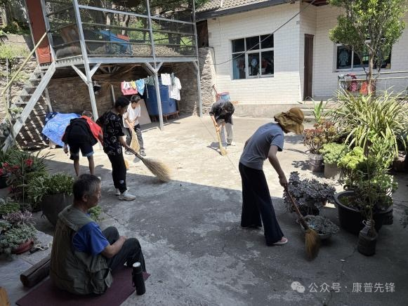在驻村工作队和村“两委”的组织下,志愿者们分小组深入村民家中,上门为行动不便的老人打扫房间、归置生活用品、整理庭院杂物,让老人们的居住环境变得整洁舒适。此外,志愿者们还与老人亲切交谈,询问生活近况、了解生活需求,用耐心和细心让老人们感受到家的温暖。