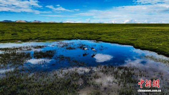 盛夏时节,祁连山南麓的青海省海西州天峻县木里镇,绿草遍野、山花烂漫,雪山倒映在修复后的措喀莫日湖湿地中。曾因非法采煤留下的“天坑”与渣山,如今演变为生态家园。