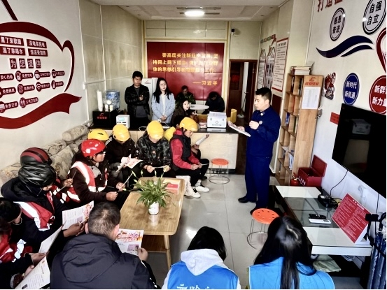 以驿站为纽带,越来越多的新就业群体正从“享受服务者”转变为“基层治理参与者”。依托驿站,他们积极参与网格排查服务,快递员、外卖骑手等在日常工作中实时上报路面积水、井盖破损、路灯损坏等隐患信息,一张流动的“民情监测网”悄然织就。不仅如此,这些“城市骑士”还主动融入社区治理的方方面面:协助开展“文明交通宣传”,用自身经历带动同行规范骑行;优秀骑手党员担任“网格助理员”,耐心调解邻里纠纷;骑手志愿宣传队在配送箱上张贴醒目的反诈标语,让反诈知识随餐品一同送达群众;在景区周边,及时提醒游客爱护环境,成为移动的“流动文明岗”;积极参与社区组织的“雨雪天气应急演练”,熟悉道路救援、物资转运流程,为应对极端天气影响储备坚实的志愿力量。