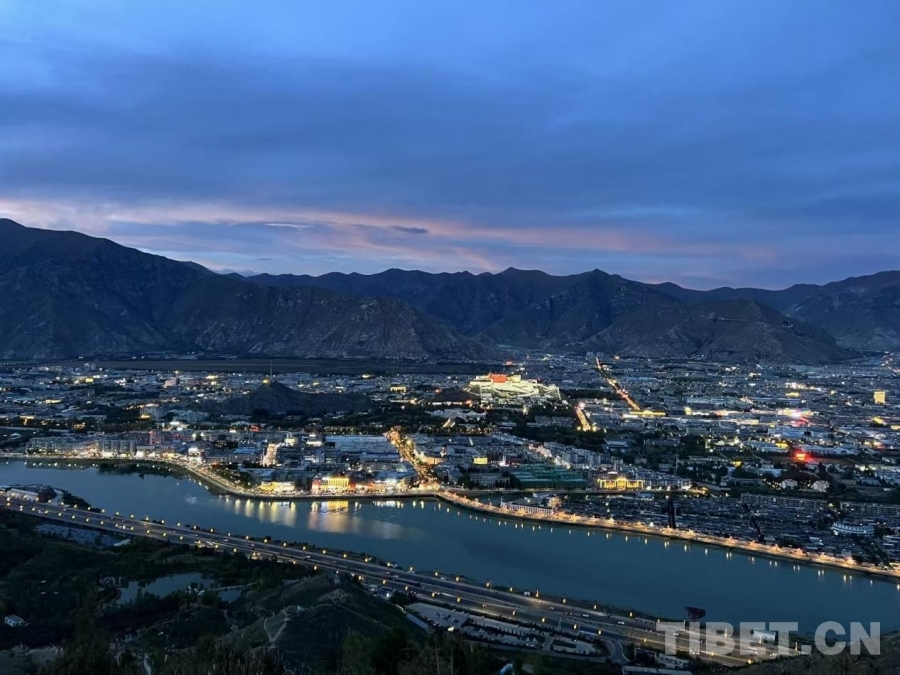 图为夜幕下灯光逐渐亮起的拉萨城 摄影:赵振宇