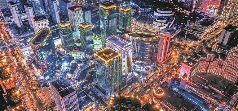 城西区灯火璀璨的夜景。 本报记者 王伟才 摄