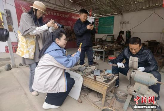图为网络人士参观体验传统刀具制作工艺。刘玉桃 摄