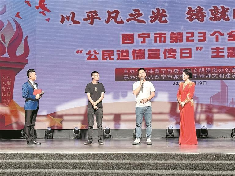 西宁“公民道德宣传日”主题示范活动中,市民分享身边好人好事,让文明新风浸润人心。本报记者 陶 然 实习生 宋清溪 摄