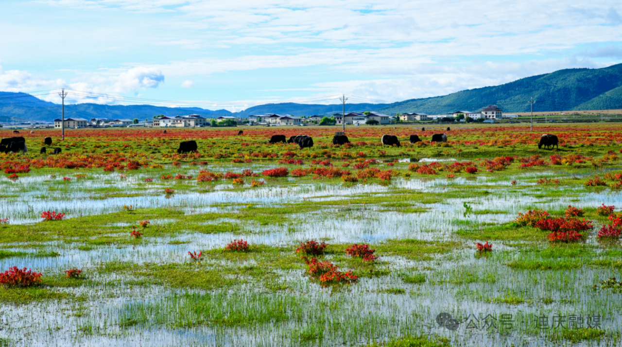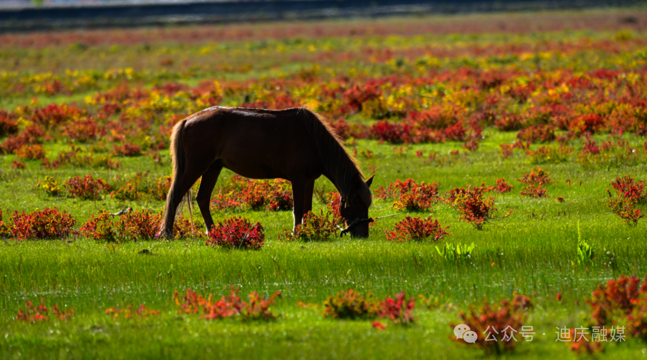 当第一缕秋风吹过纳帕海,这些高原上的精灵便集体苏醒,将整片大地由绿色晕染成绯红的诗篇。它们是身着红裙的民族舞者,在蓝天白云与雪山森林的辉映下,肆意地旋转、跳跃。