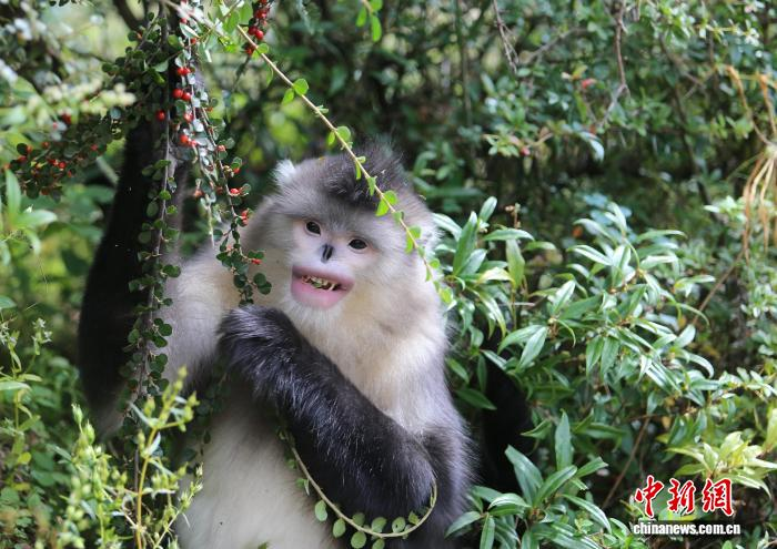 10月6日,滇金丝猴国家公园内一只滇金丝猴在进食。黄兴鸿 摄