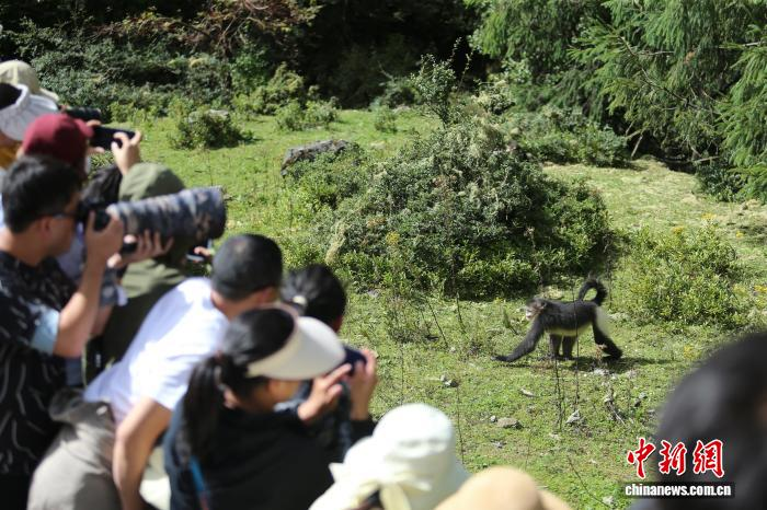 在迪庆州维西傈僳族自治县的滇金丝猴国家公园,游客长枪短炮,目的是记录滇金丝猴的美颜。