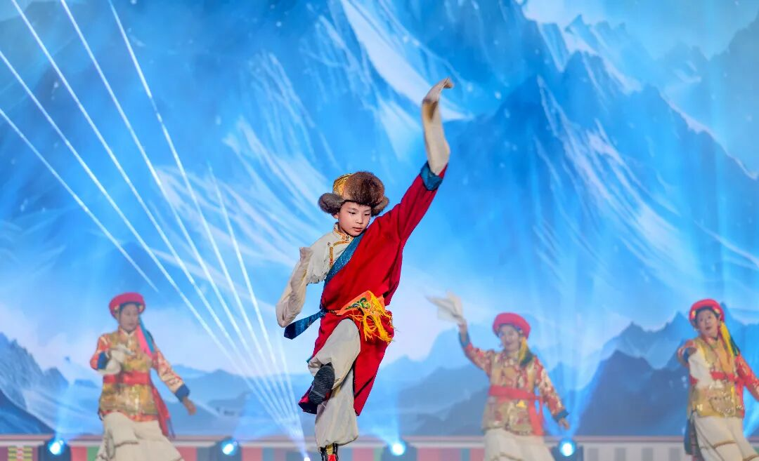 晚会在《三江同源·盛世华章》中拉开帷幕。傈僳族传统舞蹈《阿尺木刮》步伐铿锵、气势雄浑;纳西族祭祀古歌《阿勒古歌》音韵悠长,底蕴深厚;藏族舞蹈《塔城热巴》鼓声雷动、舞步飞扬,传递出对自然与生命的礼赞;《维西扬琴调》如流水潺潺,奔子栏的《幸福锅庄感党恩》祥和欢快,香格里拉锅庄舒展奔放,将整场演出推向高潮。演员们身着各民族传统服饰,纹饰精美、色彩斑斓,在灯光映照下更显文化厚重与艺术魅力,现场观众无不沉浸其中,感受到多元文化交融的温暖与美好。晚会以“时间的长河”为主线,呈现了迪庆各民族非物质文化遗产在新时代的传承与创新,彰显出“保护民族文化、传承中华文脉、促进民族团结”的深刻主题。