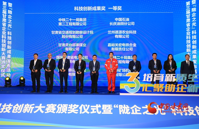 近日,第三届甘肃省企业科技创新大赛颁奖仪式暨“陇企之光”科技创新成果发布活动在甘肃科技馆举行。大赛共评选出科技创新企业金奖5家、银奖10家、铜奖15家及优秀奖40家。科技创新成果一等奖10项、二等奖20项、三等奖30项及优秀奖60项。科技创新达人20名。