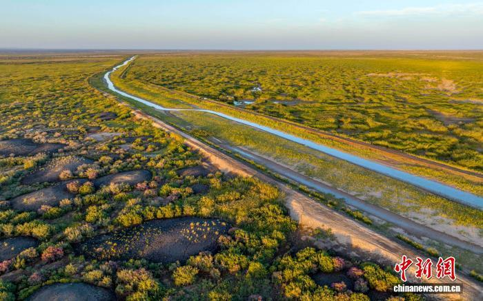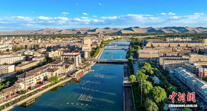 图为航拍下的党河风情线景色。(资料图) 敦煌市委宣传部供图