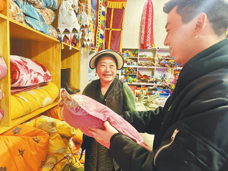泽仁拉呷正在给顾客介绍商品。张黎萍 摄