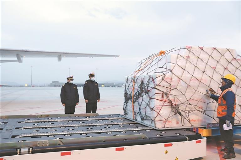 七吨多冰鲜冷水鱼搭货机出国,“青字号”出口通道进一步拓宽。西宁海关供图