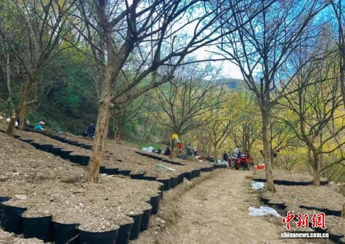 2025年康县已发展林下天麻种植1.075万余亩,桶装天麻突破102万余桶。 图为11月初,康县林下桶装天麻。李蓉 摄