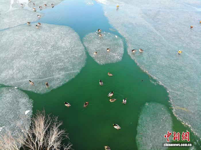 初冬的民勤红崖山水库,冰水相拥迎水鸟。(资料图)马爱彬 摄