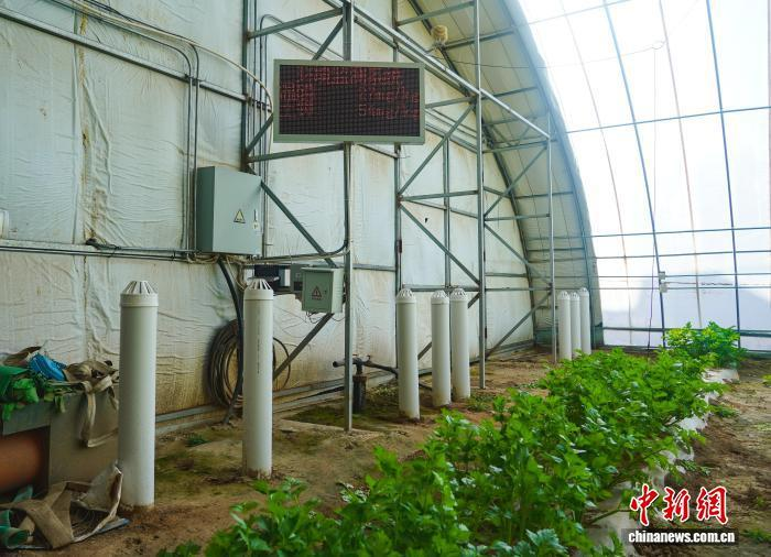 冬日清晨,甘肃省庆阳市环县木钵镇关营村现代农业产业园大棚内,25℃的温度与棚外不足10℃的气温形成鲜明对比,工作人员王翻翻用手轻拍棚壁,在传来阵阵水声的同时介绍道,棚壁采用的是注水保温墙,通过太阳照射,棚壁内的水温升高,从而起到保温作用。