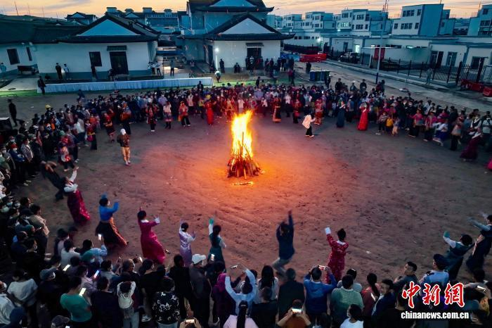 2022年9月8日,兰州新区新苑村民众在村里跳起了锅庄舞。(资料图)丁凯 摄