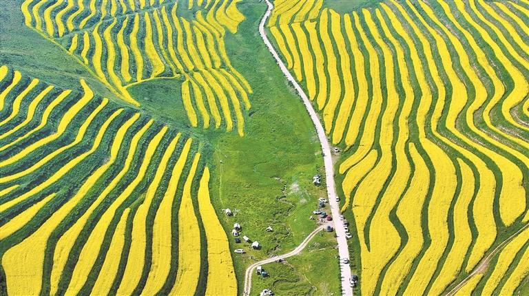油菜梯田。本报记者 李娜 魏雅琪 摄